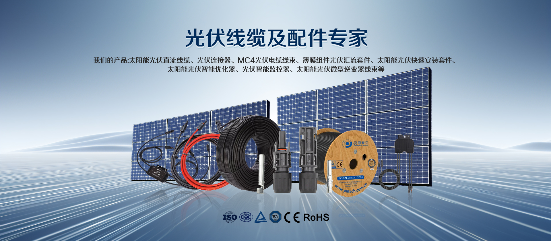 品恩泰克成立于2011年,是一家集太陽能配件生產(chǎn)、銷售、研發(fā)及服務(wù)為一體的高新技術(shù)企業(yè)。目前業(yè)務(wù)涵蓋太陽能光伏電纜、光伏連接器、光伏延長線、光伏匯流套件、微型逆變器線束及光伏鏈接領(lǐng)域應(yīng)用產(chǎn)品等的生產(chǎn)及銷售。具備提供一站式太陽能能源方案的能力,為客戶提供高品質(zhì)光伏電纜及配件產(chǎn)品,并提供安裝和能源配套方案支持。